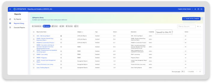Access an extensive library of reusable global and local standard reports and dashboards, including standard aggregate reports and audit/inspection reports.